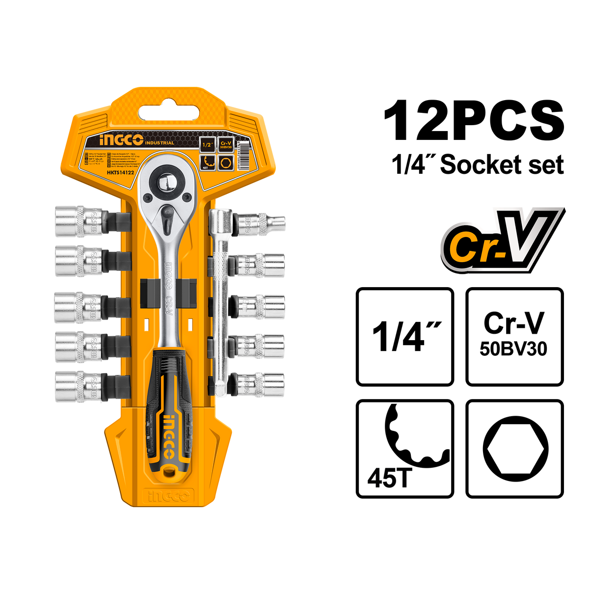 Комплект тресчотка с вложки 1/4 12 части INGCO