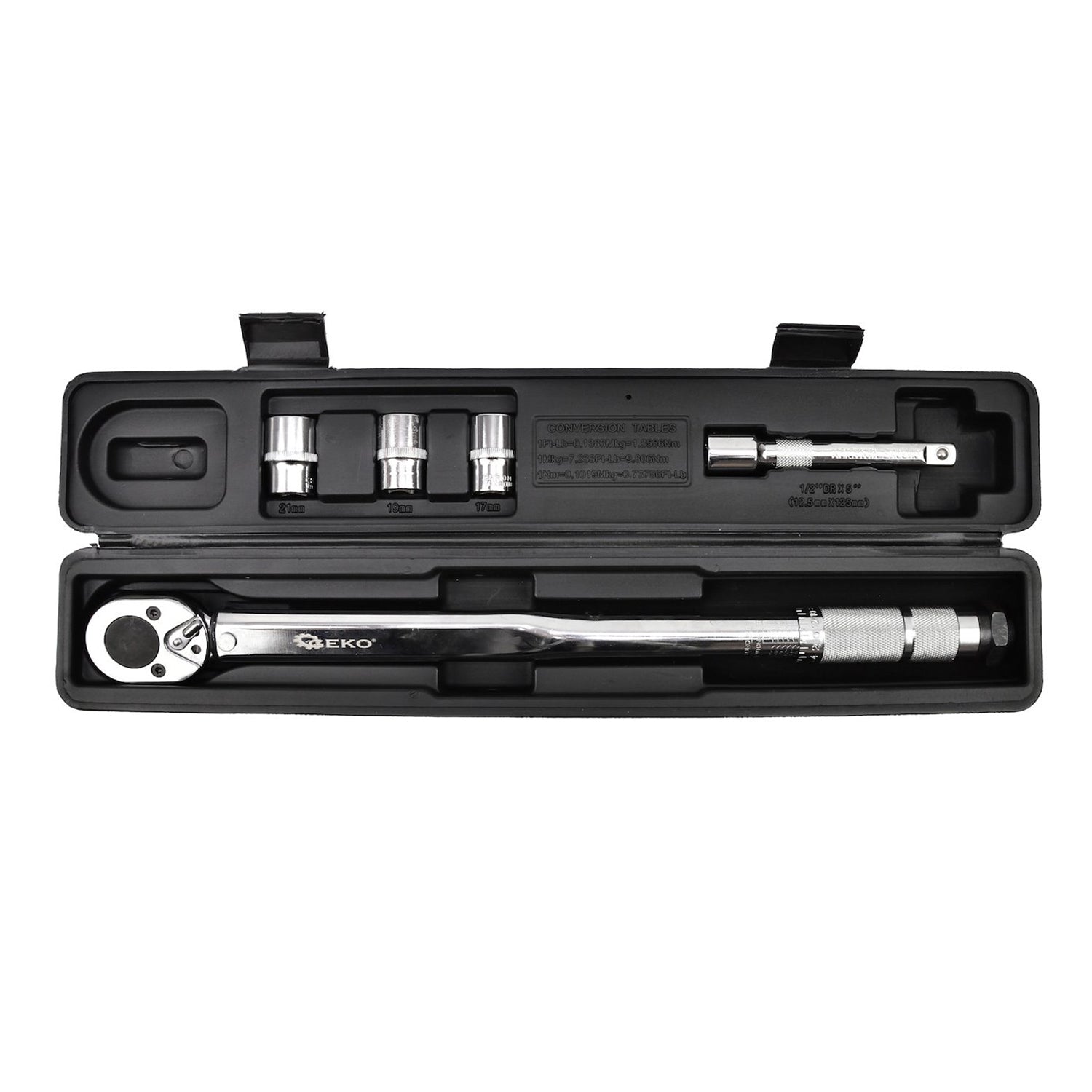 Комплект динамометричен ключ 1/2" 28-210NM с вложки и удължител GEKO