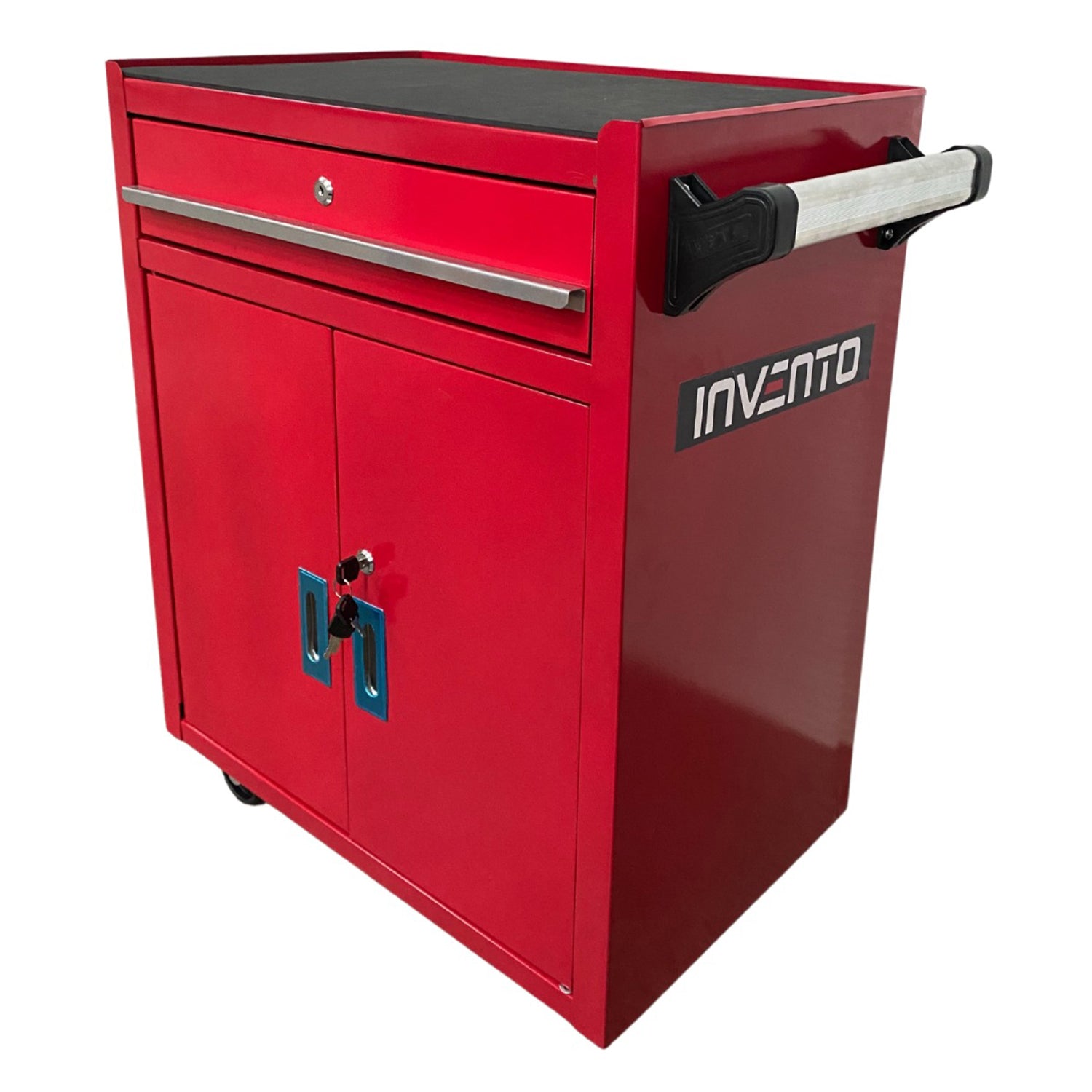 Метален шкаф за инструменти, необорудван, червен, колелца и дръжка - Premium, 73 х 63 х 40 см INVENTO