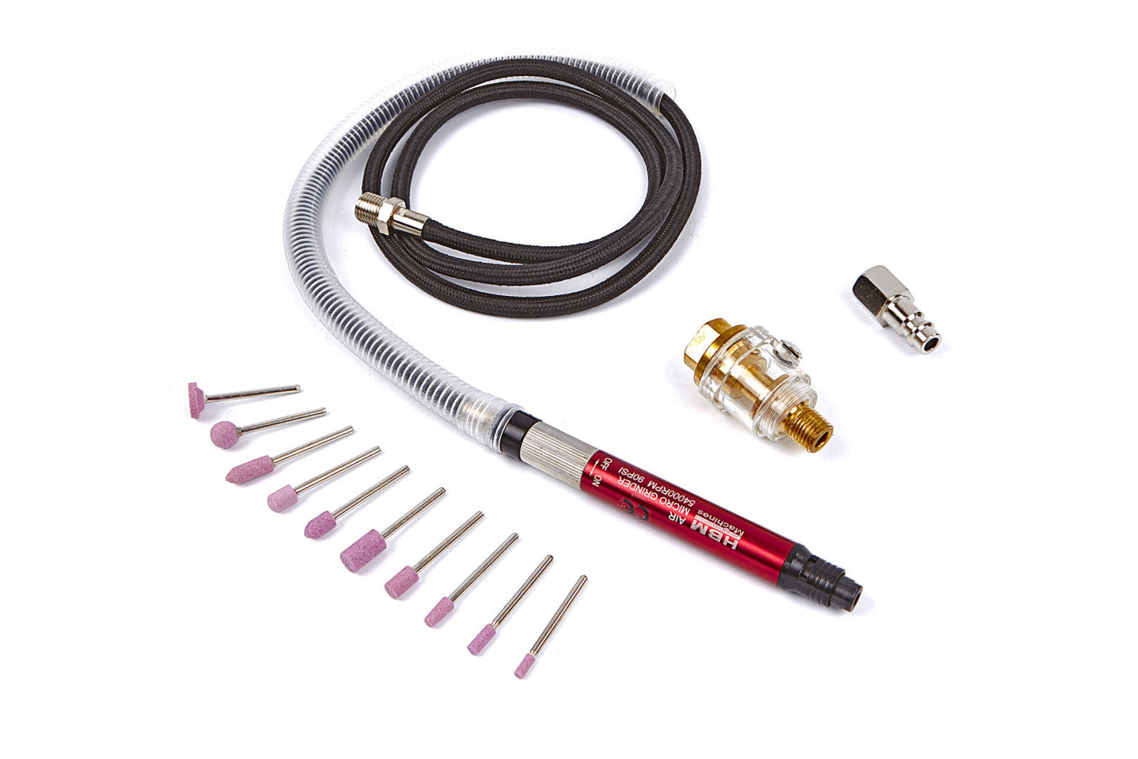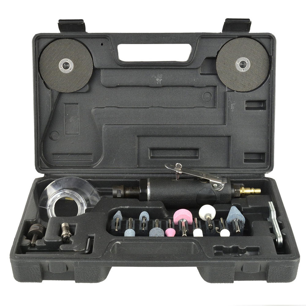 Комплект пневматичен мини шлайф тип молив, 17 части, висока скорост 58 000 об./мин., компактен и лек инструмент за шлайфане, почистване, рязане, полиране и заваряване