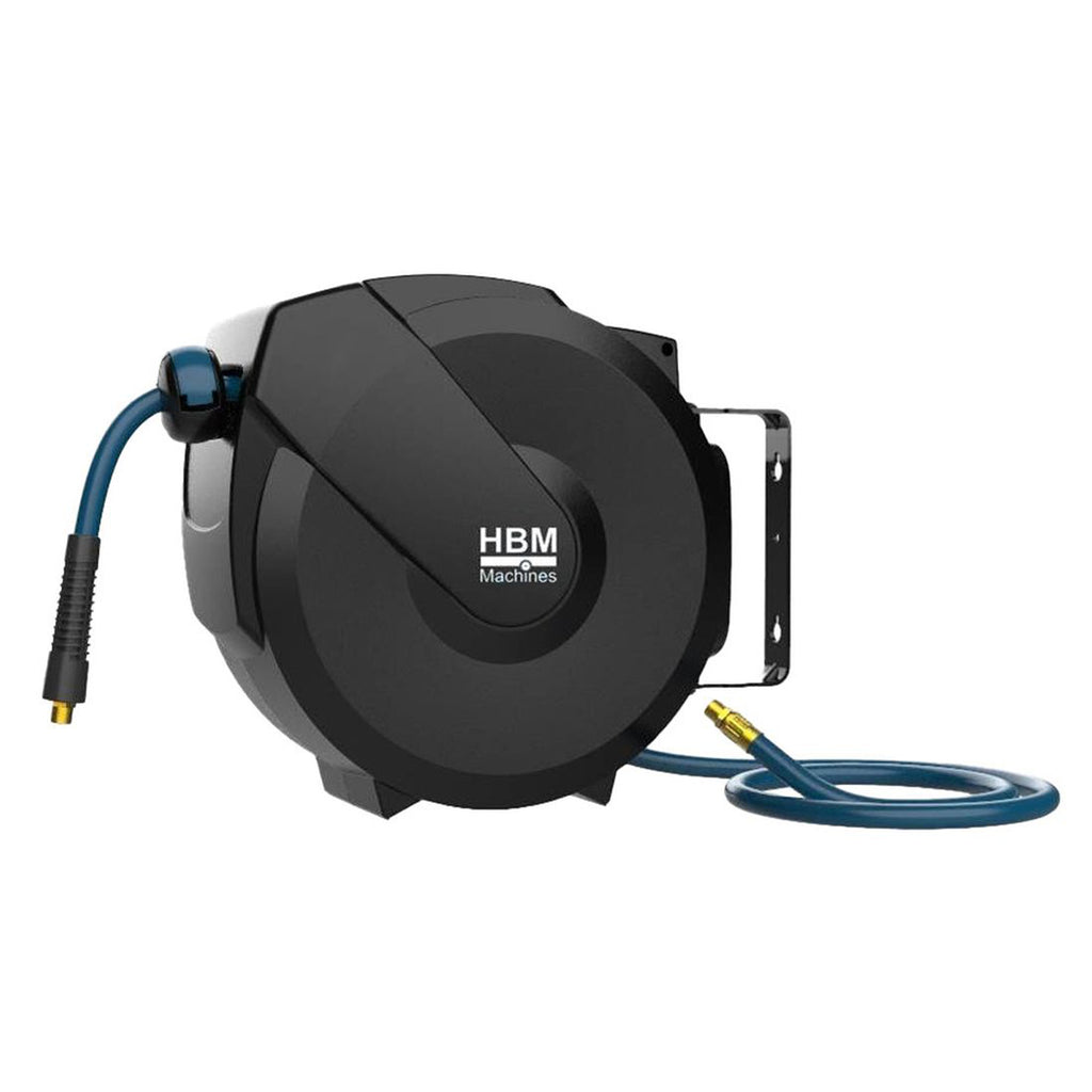 Автоматичната макара HBM Холандия с хибриден маркуч 20 м, прибиращ се, със заключване и въртящ се държач работи при максимално налягане от 17 бара. Оборудвана е с високогъвкав хибриден маркуч, с вътрешен диаметър 9,2 мм и външен диаметър 14,5 мм, оптимизиран за поддържане на постоянен поток под натоварване.