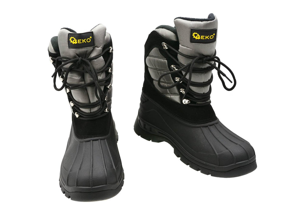 Ботушите за сняг 43 GEKO са изработени от комбинация от полиестер, найлон, полиуретан и каучук. Дължината на подметката е 28,4 см, съответстваща на размер 43, а общото тегло на чифта е приблизително 1,6 кг.