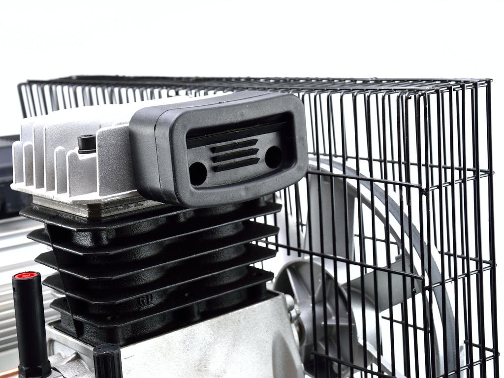 Този вертикален въздушен компресор 100 л 390 л/мин. 220V GEKO е оборудван с едностъпална помпа и ременен привод. Има резервоар с капацитет 100 литра, изработен от стомана, с вертикална конструкция. Максималното работно налягане е 8 бара, което съответства на 115 psi, а максималният въздушен дебит е 390 л/мин. Работи при 230 V и има мощност 2,0 СP. Смазочната система е на маслена основа и има прозорец за наблюдение на нивото на маслото. Компресорът е оборудван с ремъчна защита с висок дебит и има 2 колела за транспортиране. Нивото на шума е 92 dB(A).