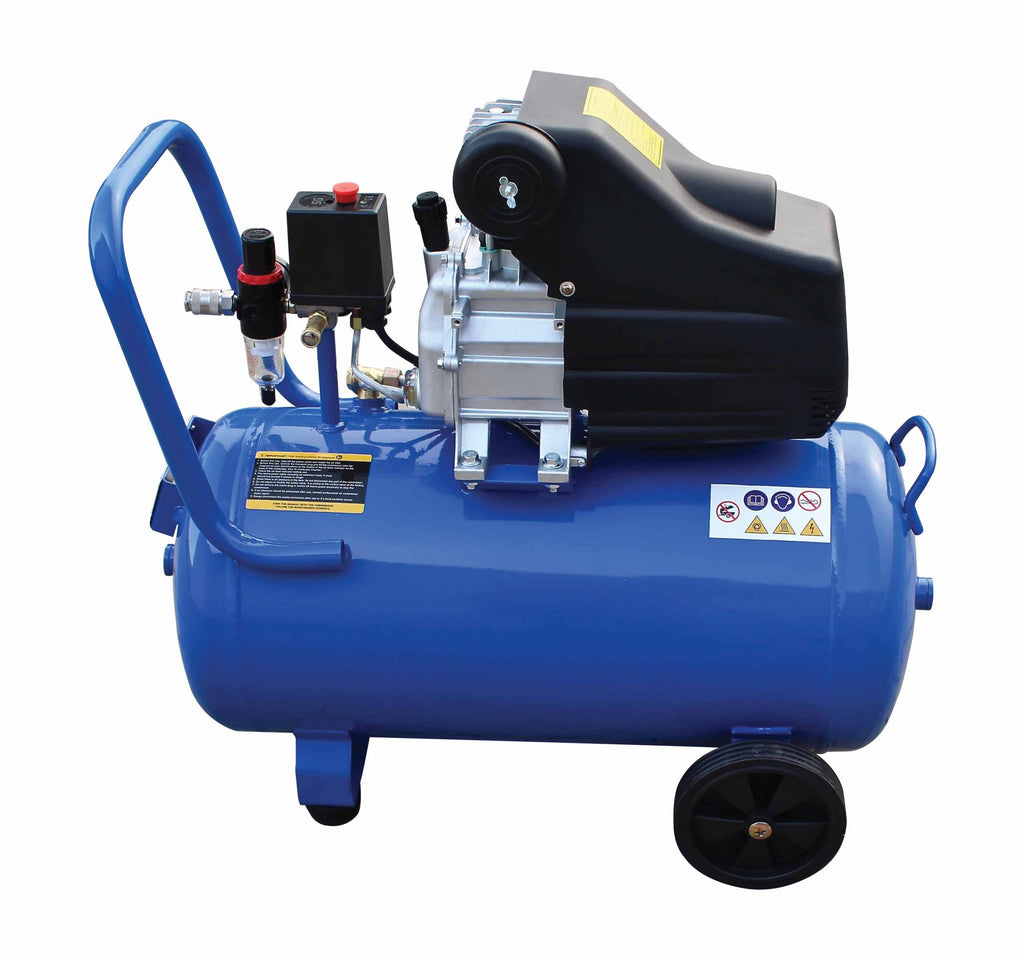 Въздушният компресор с директно задвижване 50 л SATRA е еднобутален, нискоскоростен маслен компресор, оборудван с 50-литров резервоар. Алуминиевият бутален и чугуненият цилиндър допринасят за ефективното разсейване на топлината и удължават експлоатационния живот. Електродвигателят е с мощност 1 kW, еквивалентна на 1,5 HP, работи при напрежение 220 V и честота 50 Hz и достига скорост 2850 оборота в минута. Резервоарът е изработен от дебела стоманена ламарина, покрита с антикорозионна прахова боя, с работно налягане 8 бара и компресионна мощност 190 л/мин.