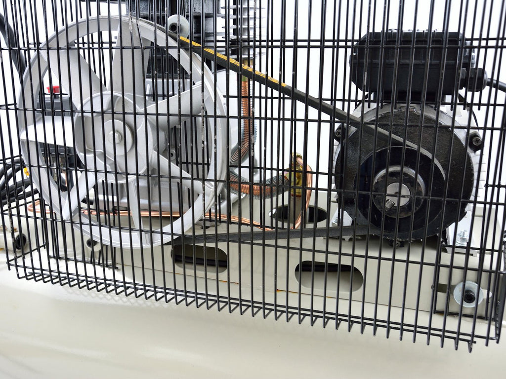 Този въздушен компресор 100 л 420 л/мин. 220V GEKO работи при 230 V и има мощност 3,0 HP. Максималният дебит на въздуха е 420 л/мин, а максималното работно налягане е 9 bar, което съответства на 130 psi. Резервоарът е с капацитет 100 литра, изработен е от стомана и е с хоризонтална конструкция. Системата за предаване е с ременен привод, а смазването е на маслена основа. Компресорът е оборудван с 4 колела за транспортиране. Нивото на шума е 92 dB(A).