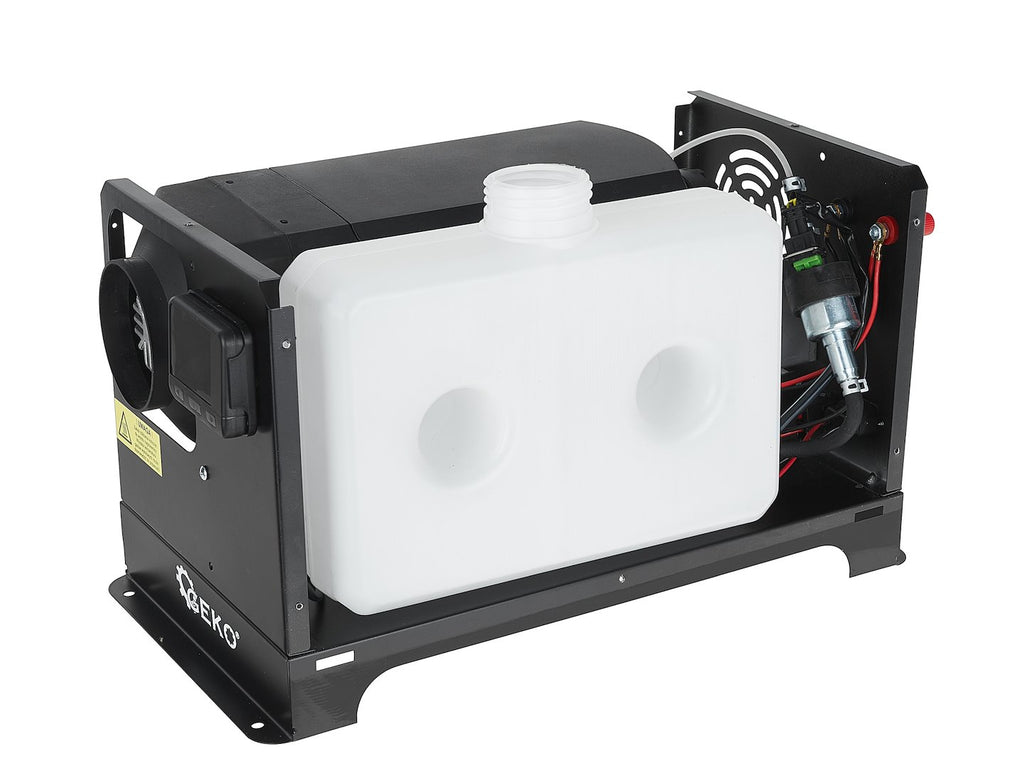 Дизеловият въздушен нагревател 12V / 230V 12kW е предназначен за бързо и ефективно отопление на помещения в моторни превозни средства, машини, лодки и каравани. Работи с дизелово гориво в съответствие със стандарта EN590 и има отоплителна мощност от 12 kW, осигурявайки поток от горещ въздух до 55 м³/ч. Устройството се захранва с 12V или 230V и има разход на гориво между 0,35 и 0,78 литра на час, а консумацията на енергия е 20-45 W.