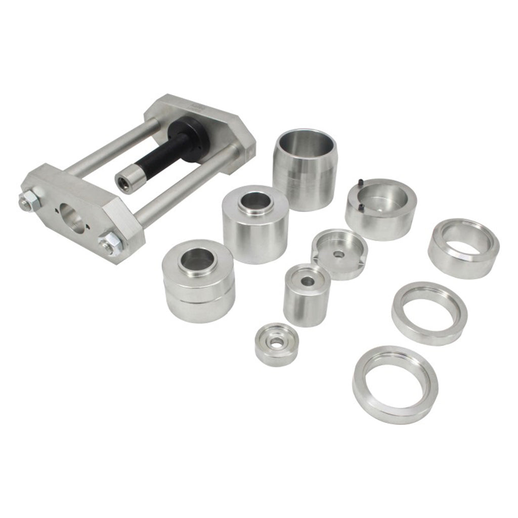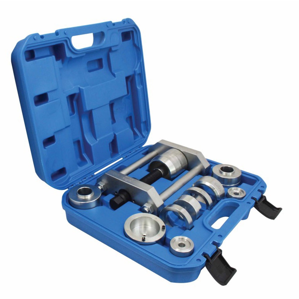 Екстракторът за втулки на окачването с адаптери за Mercedes Sprinter, VW LT, VW T4, Renault Master, Opel Movano, Nissan Interstar е специален комплект, предназначен за демонтиране и монтаж на шарнирни съединения на контролни рамена, без да се налага демонтиране на цялата окачване на автомобила. Благодарение на включените адаптери, той е съвместим с широка гама от модели търговски превозни средства.