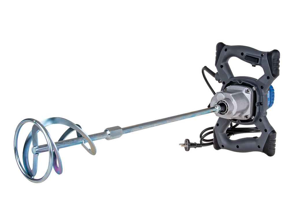 Този електрически миксер 1200W 2 скорости M14 за бои и хоросани - GEKO е предназначен за смесване на строителни материали като бои, гипсови мостари, лепила, мазилки и пълнители. Той е оборудван с 1200 W мотор и работи при 230 V ~ 50 Hz. Има две работни скорости, скорост I за смесване на гъсти материали и скорост II за по-леки материали. Максималната скорост е 930 об/мин и може да се регулира в зависимост от вида на материала.