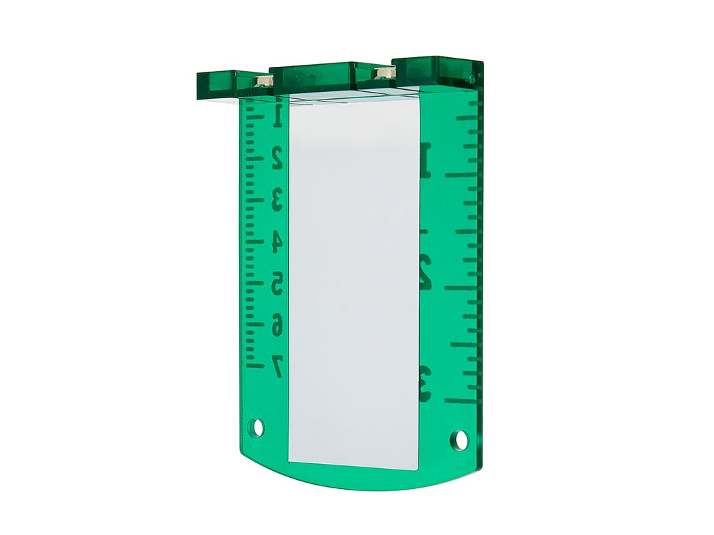 Зелената платка за лазерен нивелир с магнит и скала предлага повишена видимост на лъча, особено за лазери със зелена светлина. Зелената повърхност ефективно отразява лъча, като подобрява контраста в условия на слаба светлина. Тя е оборудвана с два разположени отгоре феритни магнита, които позволяват бързо и стабилно закрепване към метални елементи като профили или релси.
