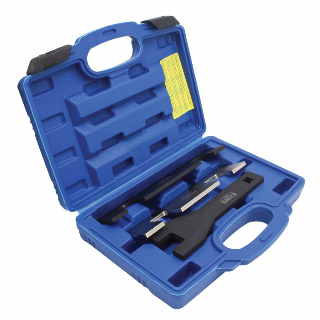 Инструментите за фиксиране/блокиране на ангренажен ремък за OPEL 1.0 1.4 1.5 TURBO е професионален комплект SATRA, предназначен за заключване и регулиране на ангренажните разпределителни валове в бензинови двигатели с верижна трансмисия, използван в модели на Opel, оборудвани с 1.0, 1.4 и 1.5 турбо двигатели, но е съвместим и с други двигатели, произведени след 2014 г.