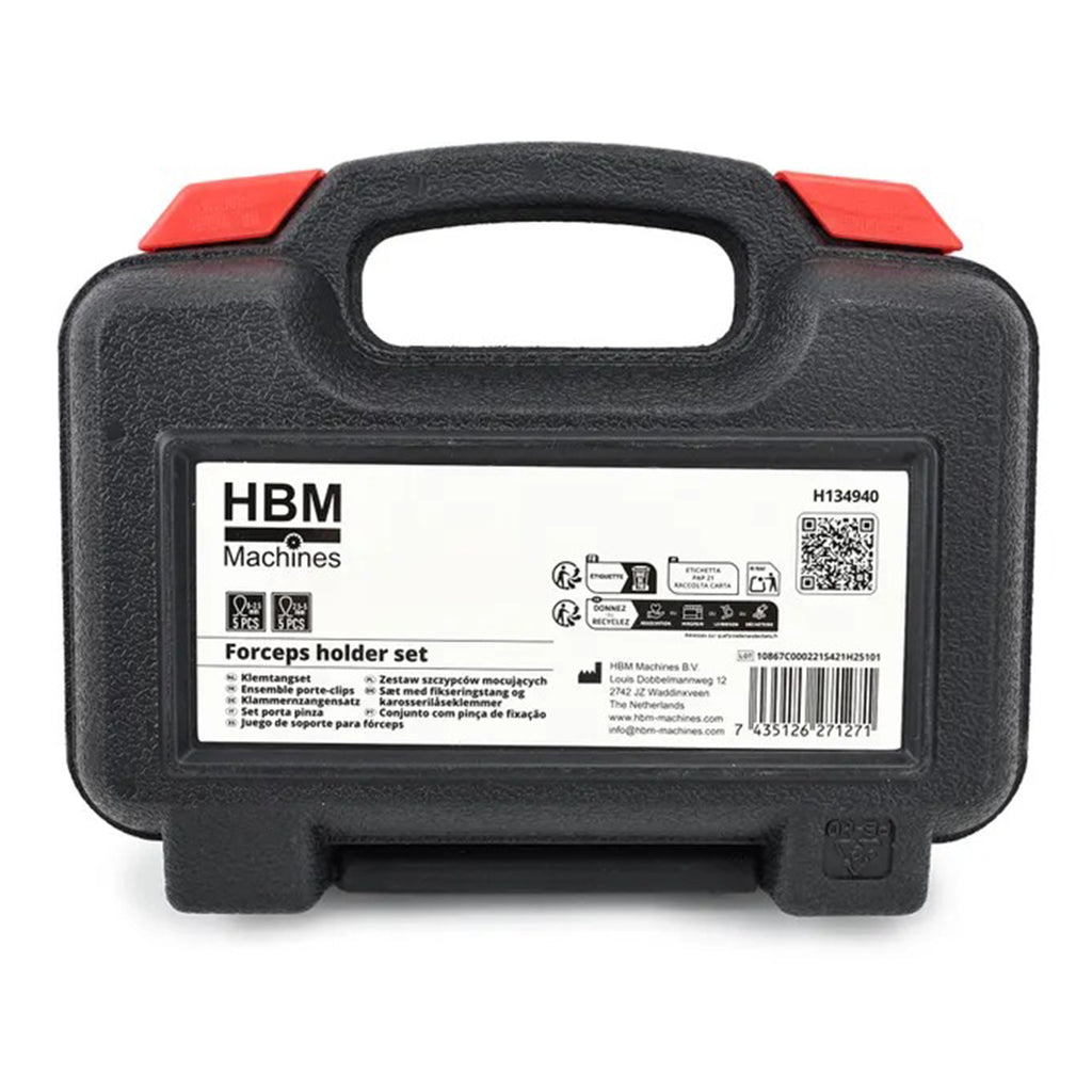 Тези клещи и скоби за фиксиране на плоскости за заваряване, 11 части HBM съдържат общо 11 броя, състоящи се от скоби, изработени от хром-ванадиева стомана, и клипсове, предназначени да задържат плочите на място, дори в труднодостъпни места.
