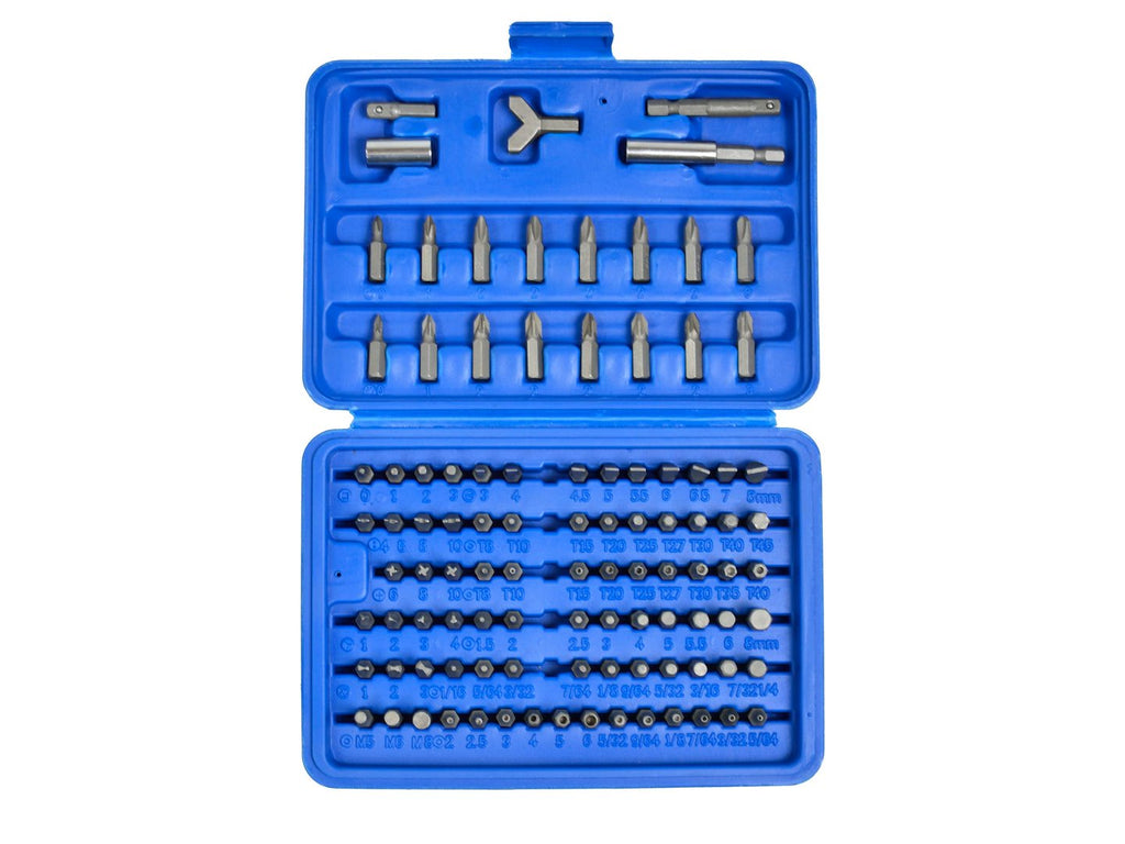 Комплектът битове за отвертка 100 бр. GEKO съдържа 100 накрайника от въглеродна стомана, предназначени за използване с инструменти с 1/4" задвижване. Комплектът включва удължители 1/4" SQ. x 1/4“ Hex с дължина 1 инч и 2 инча, един wing nut driver, 60 мм магнитен държач за битове и тръбен държач за битове.