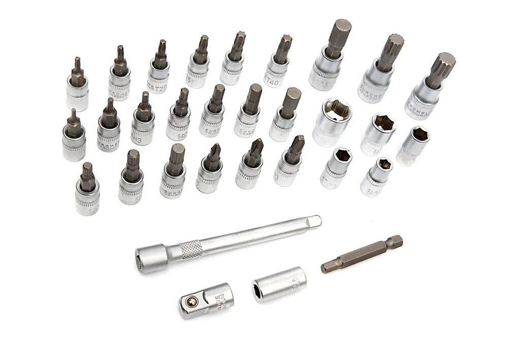 - 1/4" тръбни гаечни ключове: PH1, PH2, PH3, M5, M6, M8, T10, T15, T20, Т25, Т30, Т40, Н2, Н2,5, Н3, Н4, Н5, Н6, Н8