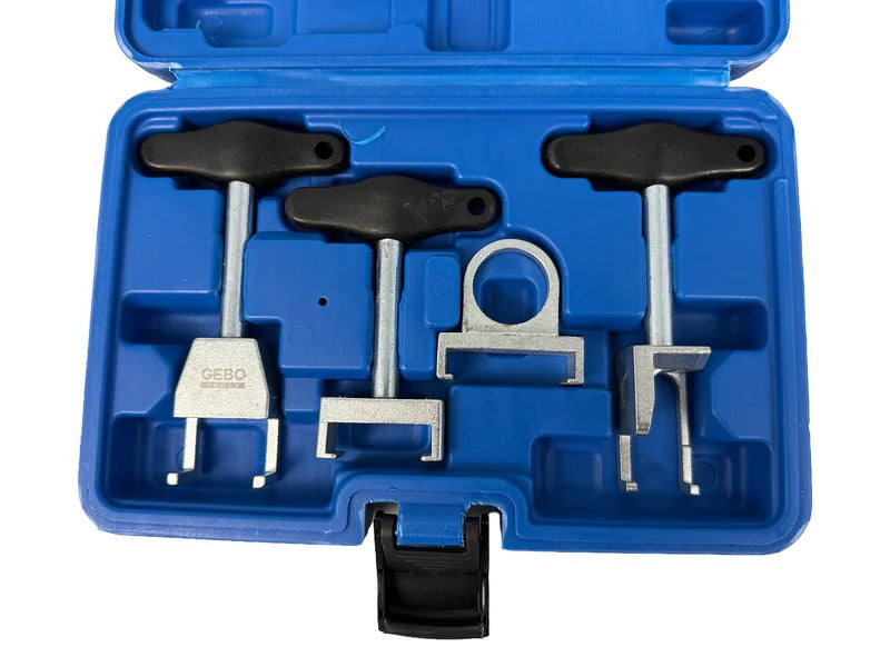 Този комплект екстрактори за свещи и индукционни бобини GEBO TOOLS е предназначен за бързо и безопасно демонтиране на щепселите за свещи и индукционните бобини при автомобили от групата VAG. Комплектът позволява отстраняването на компонентите без прилагане на прекомерна сила, като по този начин намалява риска от повреда.