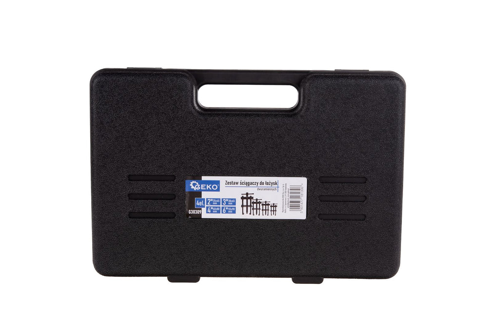 Този комплект екстрактор за лагери с две рамена 4 броя GEKO е предназначен за изваждане на лагери с различни размери. Комплектът включва четири двураменни екстрактора с размери 2" (35 x 45 мм), 3“ (38 x 65 мм), 4" (40 x 80 мм) и 6“ (55 x 90 мм). Рамената са оборудвани с допълнителни винтове за стабилност по време на операцията по изваждане. Извличащите устройства са изработени от легирана стомана, устойчива на високи натоварвания и интензивна употреба. Конструкцията позволява лесна и ефективна употреба.
