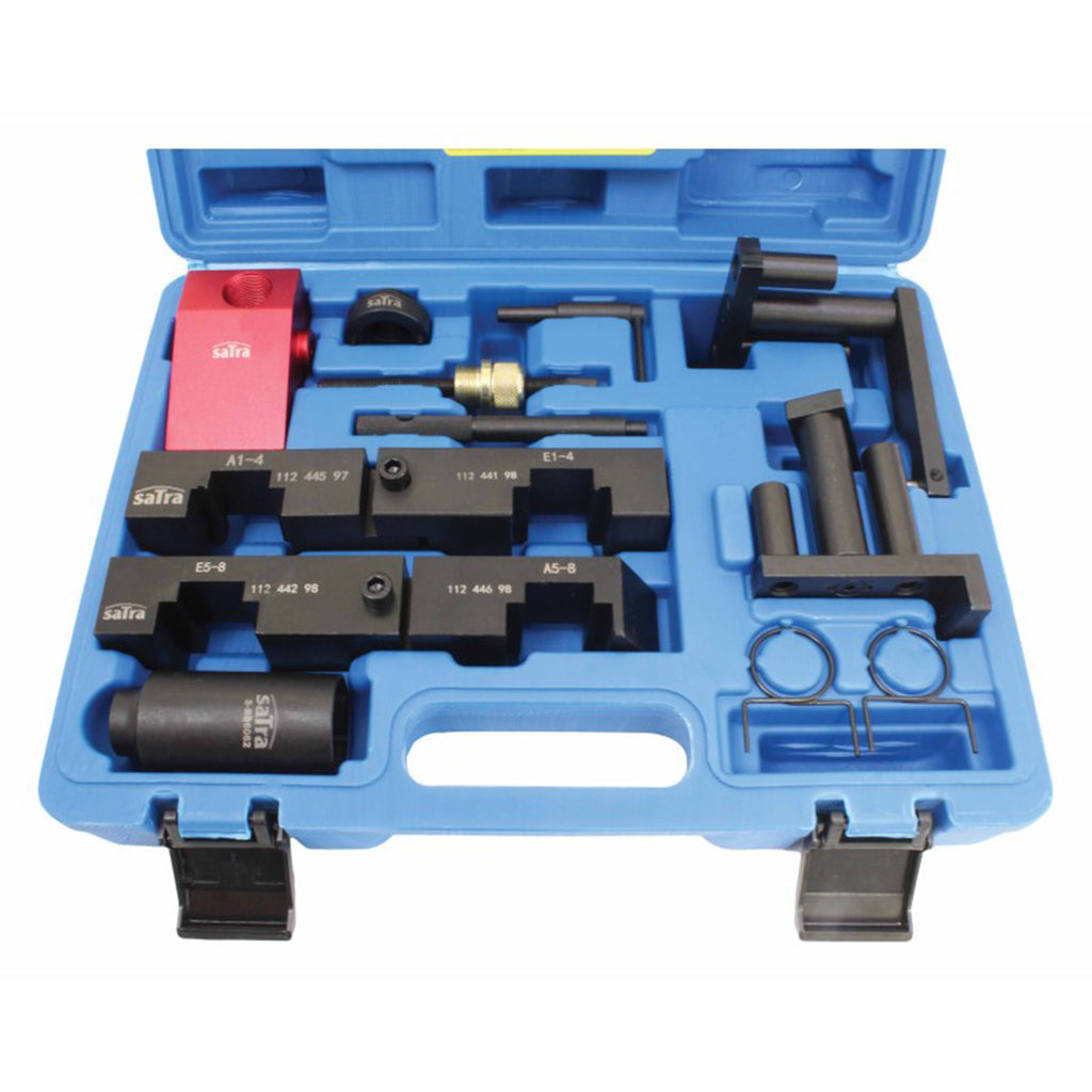 Този комплект има 2 пластини с въртящо се заключване и заключващ щифт за регулиране на разпределителните валове.