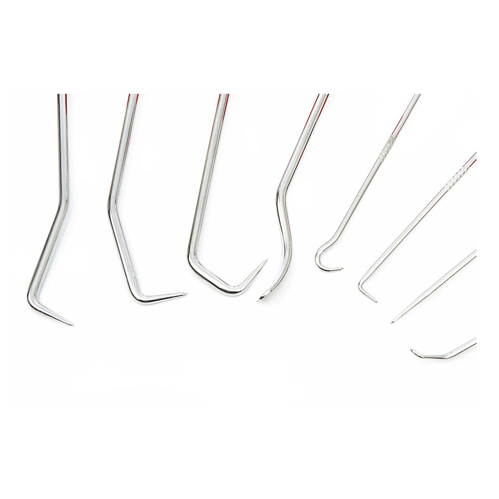 Този комплект куки за изваждане на уплътнения 8 части НВМ съдържа инструментите, които са ви необходими, за да достигнете до труднодостъпни места и да извличате уплътнения с прецизност. Някои от включените части са: плосък екстрактор, екстрактор с ъгъл 90°, екстрактор с ъгъл 45°, екстрактор с кука.