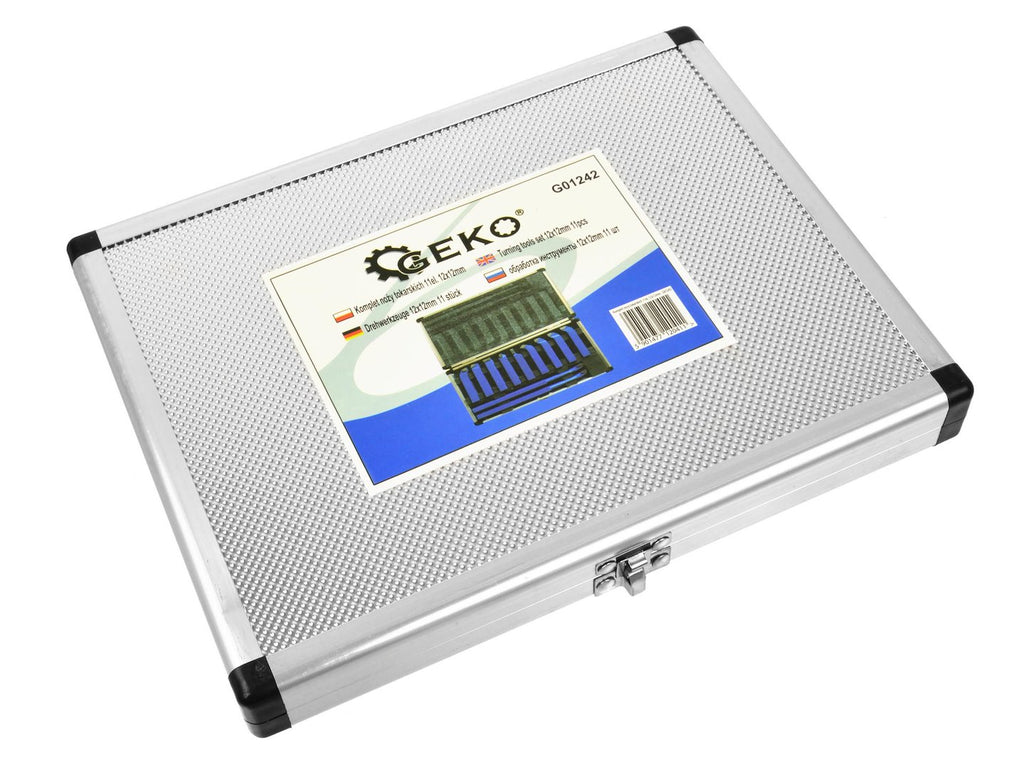 Този комплект 11 карбидни ножа за струг 12 x 12 мм - GEKO е предназначен за металообработване. Инструментите имат размер на опашката 12 x 12 мм и са оборудвани с шлифовани карбидни вложки. Комплектът се доставя в алуминиева кутия.