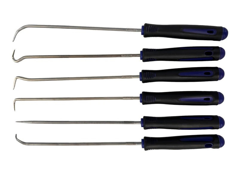 Този комплект 6 екстра дълги куки за изваждане на уплътнения GEBO TOOLS е предназначен за отстраняване на уплътнения, О-пръстени, уплътнителни пръстени и други елементи, монтирани на труднодостъпни места. Комплектът е снабден с меки дръжки за по-добър контрол и по-голям комфорт при употреба.