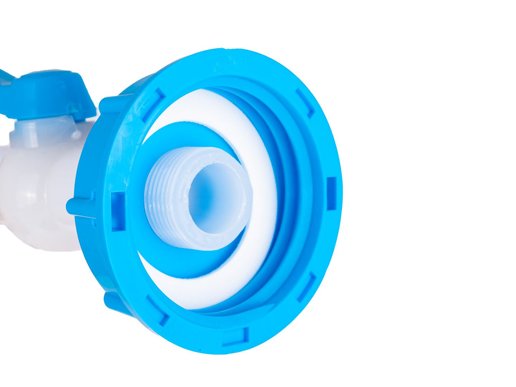 Вентилът се задейства ръчно с лост и позволява бърза настройка на дебита. Уплътнението се осигурява от включената в комплекта уплътнителна гайка и 12 мм PTFE лента. Сглобката е изработена от UV и химически устойчив PP/PE материал, има обща дължина 20 см и се използва за приложения с IBC резервоари в градинарството, селското стопанство и промишлеността.