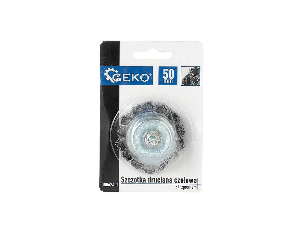 Кръгла четка от плетена тел, 50 мм, с ос - за почистване на метал - GEKO
