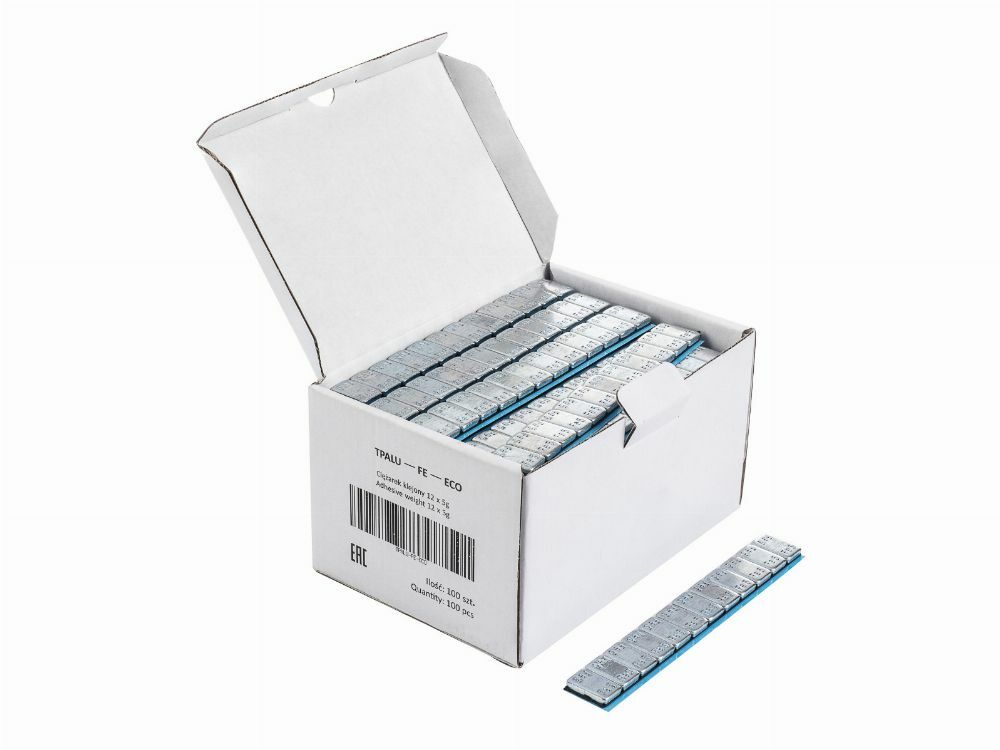 Кутията залепващи се тежести 5 г ROUND 100 ленти има 12 сегмента по 5 грама всеки, с общо тегло 60 грама на лента. Проектирани за балансиране на автомобилни колела, тези тежести са изработени от стомана и имат цинково покритие за защита от корозия. Всеки сегмент е с дебелина 4 мм, което гарантира дискретна и ефективна инсталация. Самозалепващият дизайн позволява бързо и сигурно прикрепване към джантите.