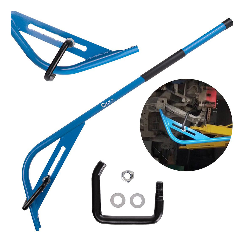 Този лост за демонтиране на окачващите рамена GEKO е предназначен за монтаж и демонтиране на компоненти на окачването и шарнири на различни видове превозни средства и машини. Инструментът е изработен от устойчива на корозия стомана A3. Той е оборудван с плъзгаща се система за регулиране. Дръжката е покрита с гумиран материал за сигурно захващане и удобна употреба. Конструкцията позволява работа от един човек. Дължината на лоста е 118 см.