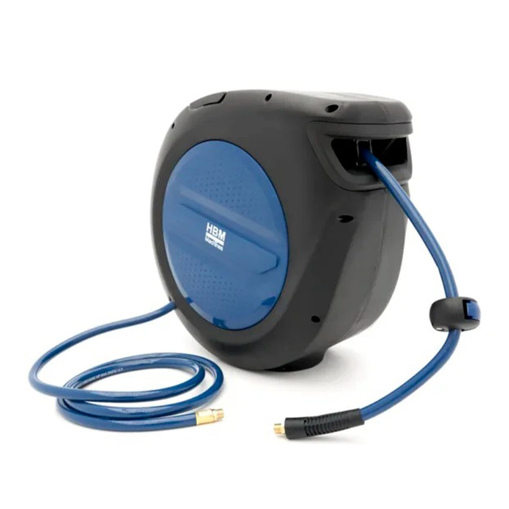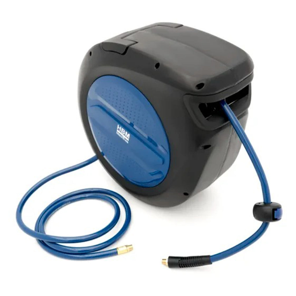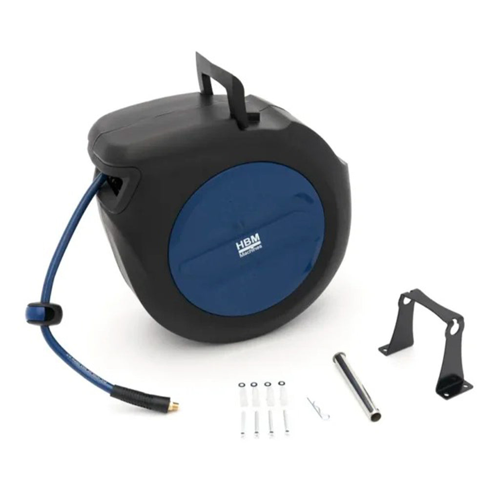 Тази макара с въздушен маркуч 9.5 х 14.5 мм 15 м HBM е оборудвана с въртяща се на 180 градуса монтажна скоба. Системата за автоматично заключване и прибиране улеснява работата с маркуча. Изработен е така, че да издържа на налягане до 16 бара. Вътрешният диаметър на маркуча е 9,5 мм, а външният - 14,5 мм. Дължината му е до 15 метра. Връзката на маркуча е 3/8“. Общите размери са 33 x 18 x 37,5 см, а теглото може да достигне до 4,8 кг.