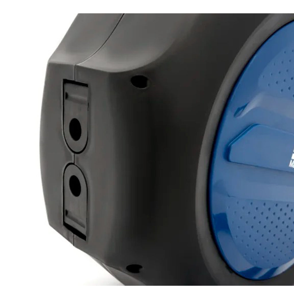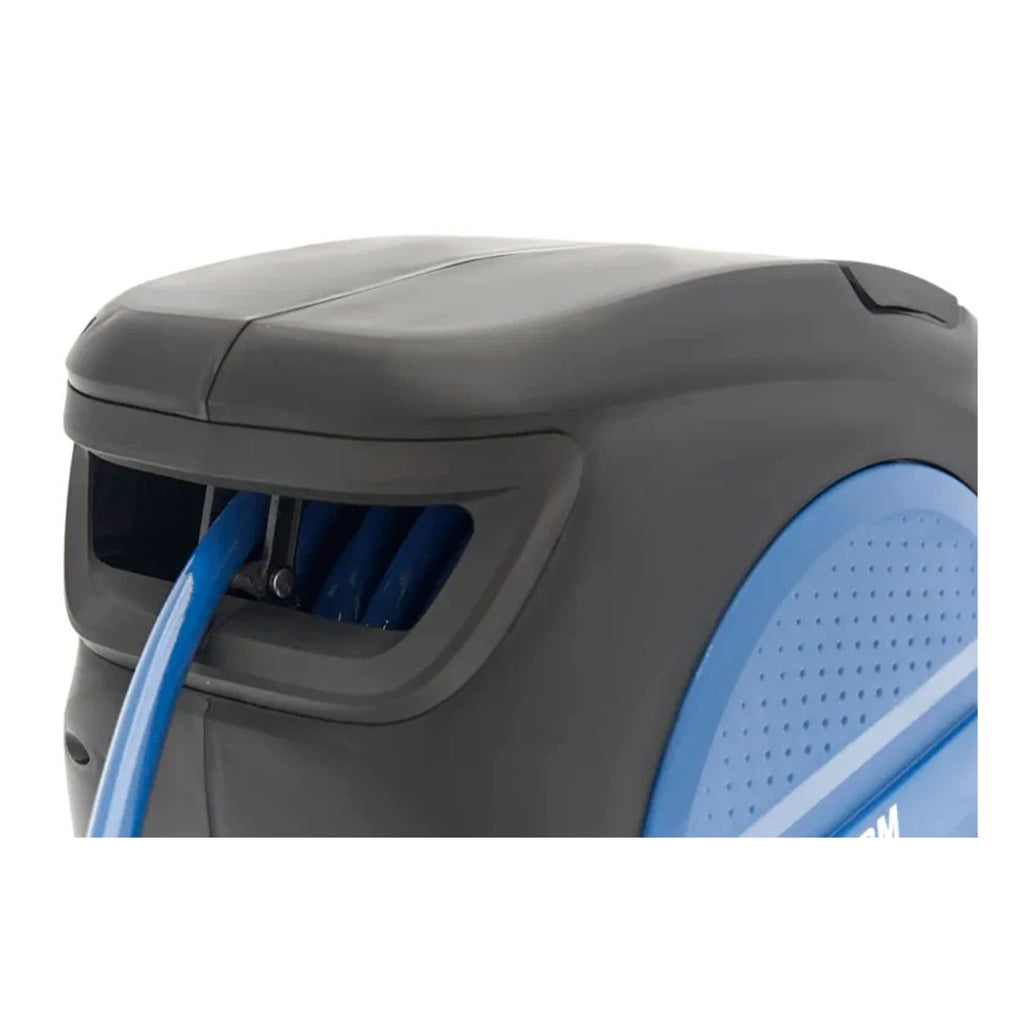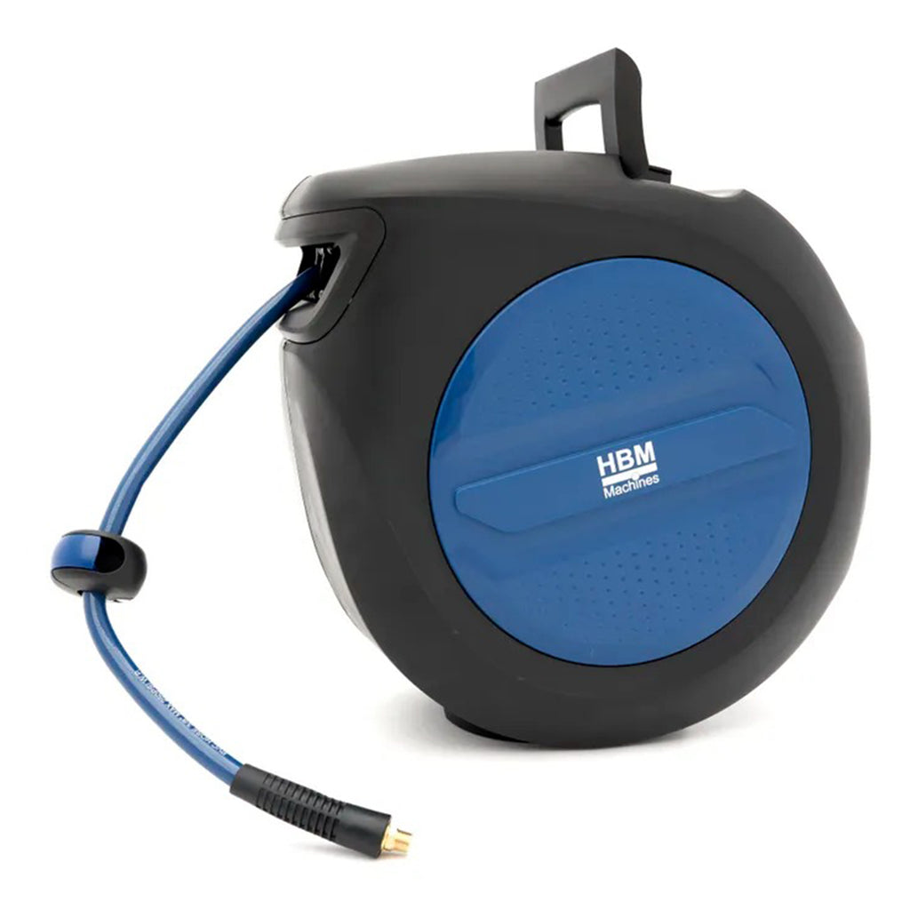 Тази макара с въздушен маркуч 9.5 х 14.5 мм 15 м HBM е оборудвана с въртяща се на 180 градуса монтажна скоба. Системата за автоматично заключване и прибиране улеснява работата с маркуча. Изработен е така, че да издържа на налягане до 16 бара. Вътрешният диаметър на маркуча е 9,5 мм, а външният - 14,5 мм. Дължината му е до 15 метра. Връзката на маркуча е 3/8“. Общите размери са 33 x 18 x 37,5 см, а теглото може да достигне до 4,8 кг.
