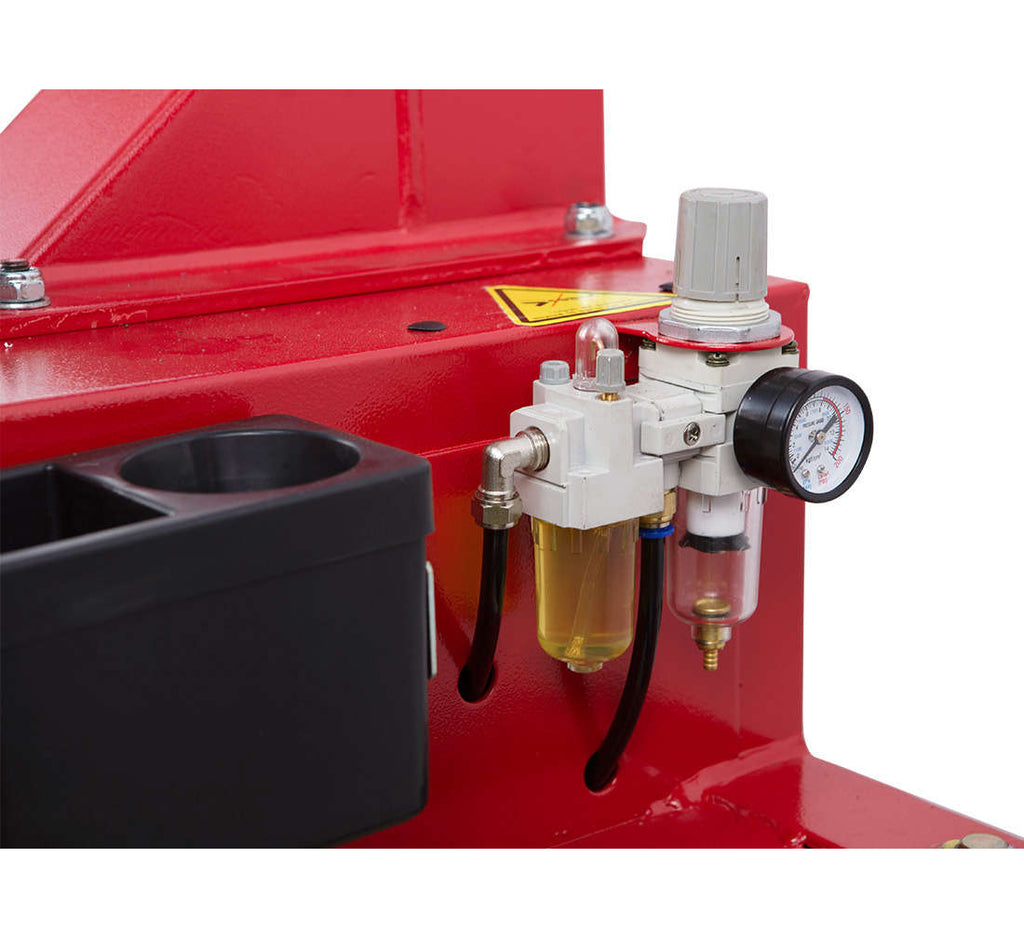 Машината е изработена от висококачествени материали, така че е издръжлива и предлага много добри резултати. В същото време работният процес е удобен и лесен, благодарение на полуавтоматичното монтажно рамо и въртящата се маса.