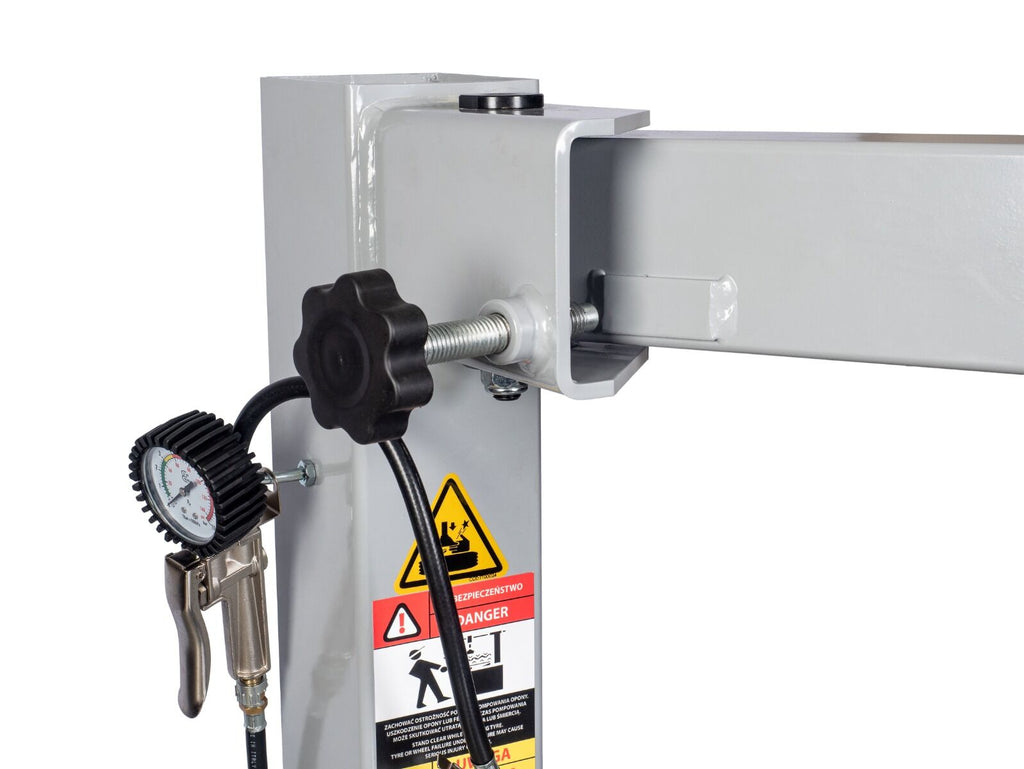Платформата за монтаж е подходяща за широка гама от джанти, а системата за помпено въздух допринася за ефективността на процеса на монтаж. Машината работи с едноскоростен мотор, захранван с 230 V, което я прави подходяща за работилници, които не разполагат с трифазно електрозахранване. Тя е съвместима с опционален опорен ръкав, който осигурява допълнителна опора при работа с нископрофилни или run-flat гуми, елиминирайки необходимостта от допълнителна помощ.