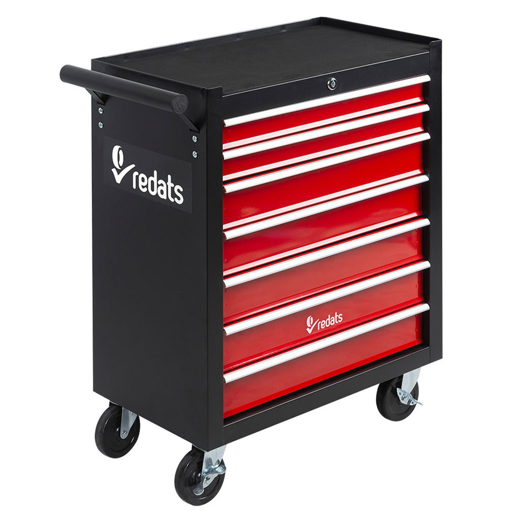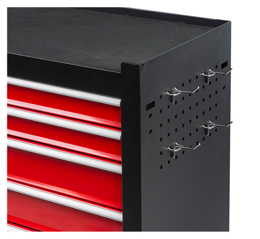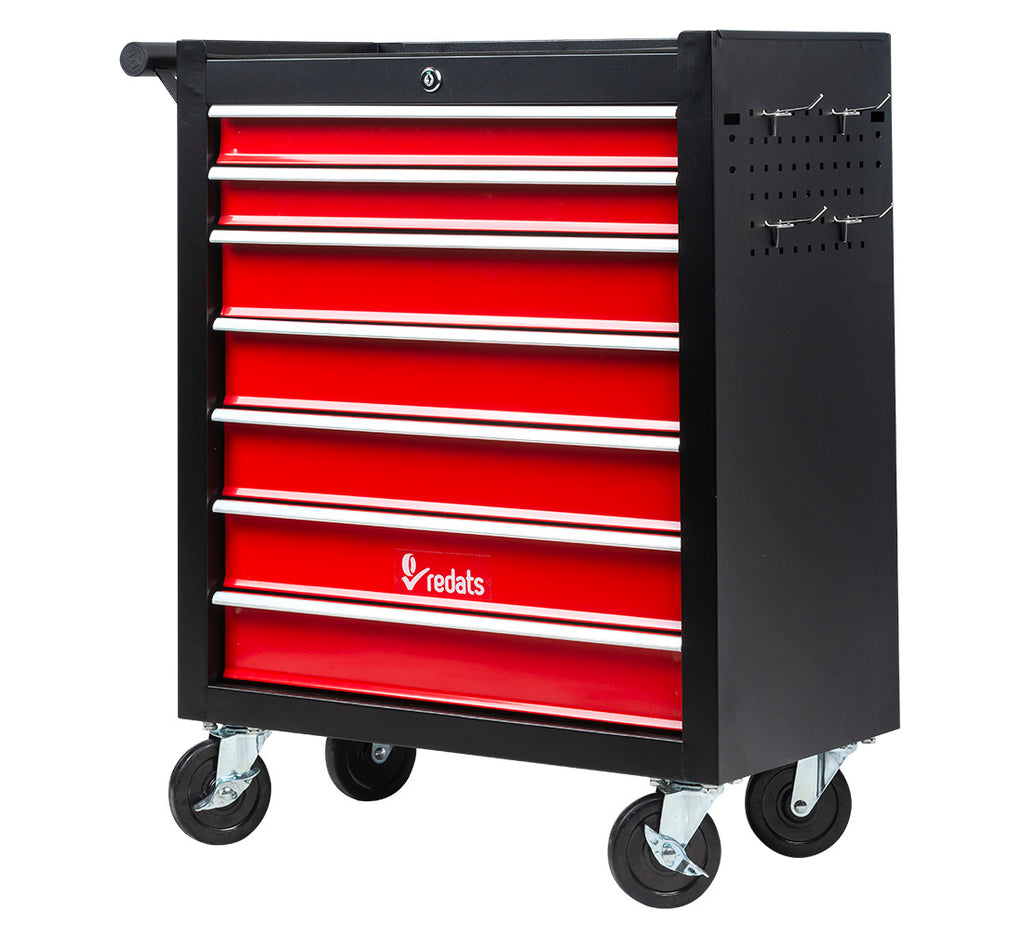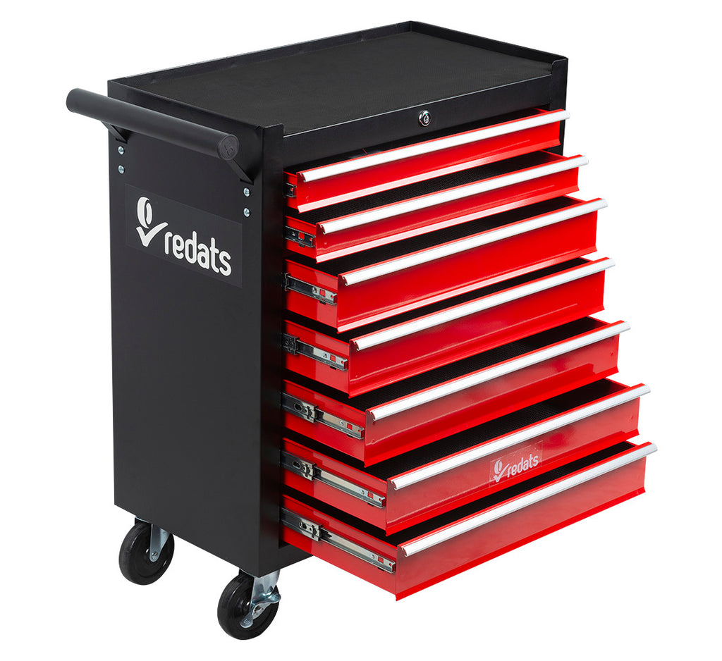 Този метален шкаф за инструменти със 7 чекмеджета REDATS е практично и трайно решение за ефективно организиране на инструменти в малко пространство. Изработена от износоустойчиви материали, тази количка е оборудвана със 7 просторни чекмеджета, включително две горни чекмеджета с вътрешни размери 511 x 278 x 54 мм и пет долни чекмеджета с вътрешни размери 511 x 278 x 84 мм. Малките чекмеджета могат да поберат до 10 кг, а големите - до 15 кг, докато горното чекмедже може да побере до 90 кг, което я прави идеална за лека работа или за съхранение на често използвано оборудване.