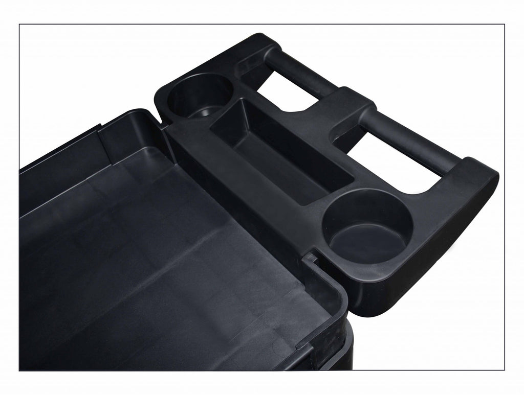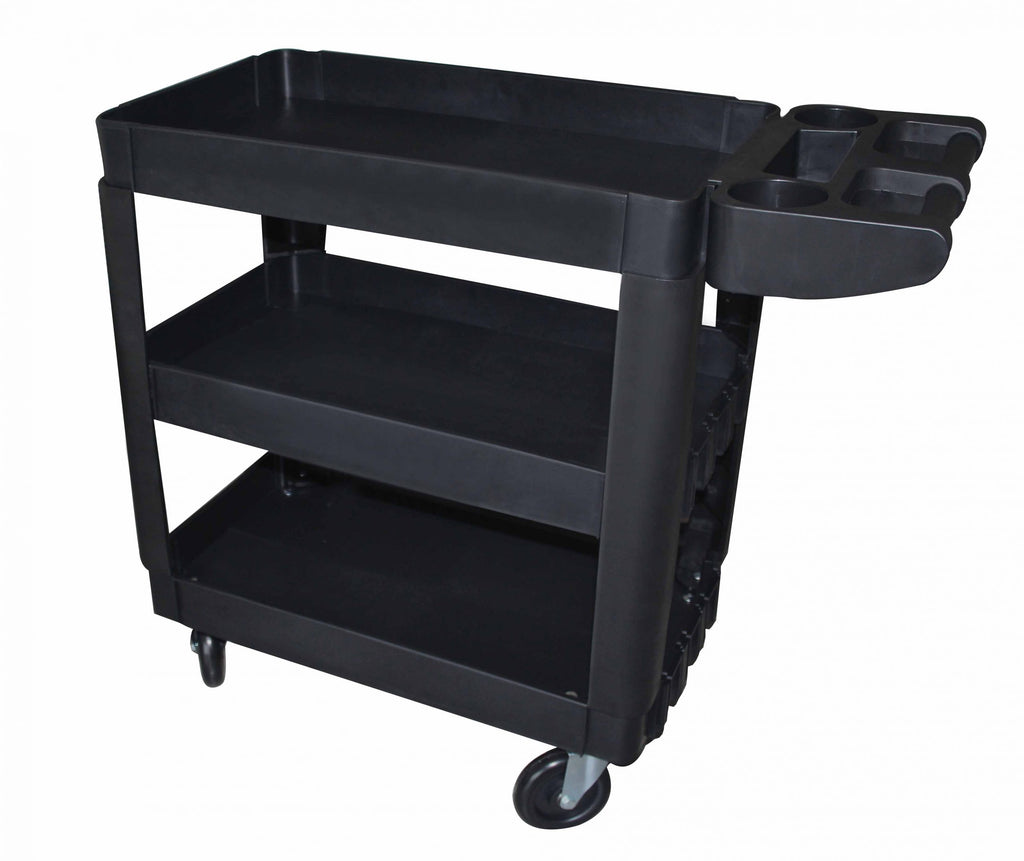 Тази мобилна количка за инструменти, издръжлива пластмаса, 3 рафта, 250 кг, с дръжки и въртящи се колела, размери 69,5х41х90,5 см е практичен и издръжлив модел, предназначен за използване в дома, работилницата, гаража или градината. Изработена е от пластмаса, устойчива на замърсяване и специфичните условия в автомобилните работилници, и е оборудван с 3 рафта за ефективно подреждане на инструменти и аксесоари.