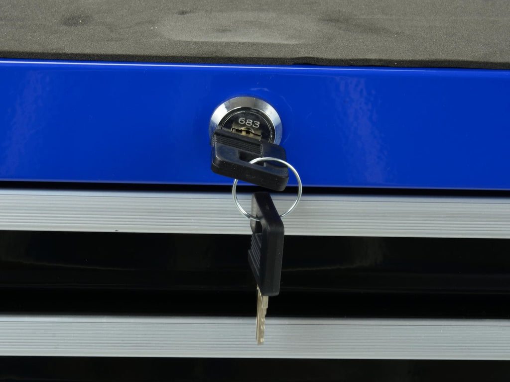 Горната работна повърхност е с размери 610 x 325 мм. Шкафът е оборудван със седем изцяло изтеглящи се чекмеджета, монтирани на телескопични водачи със сачмени лагери. Две от чекмеджетата имат вътрешни размери 510 x 290 x 30 мм, а останалите пет чекмеджета имат вътрешни размери 510 x 290 x 75 мм. Всяко чекмедже е оборудвано с противоплъзгаща подложка.