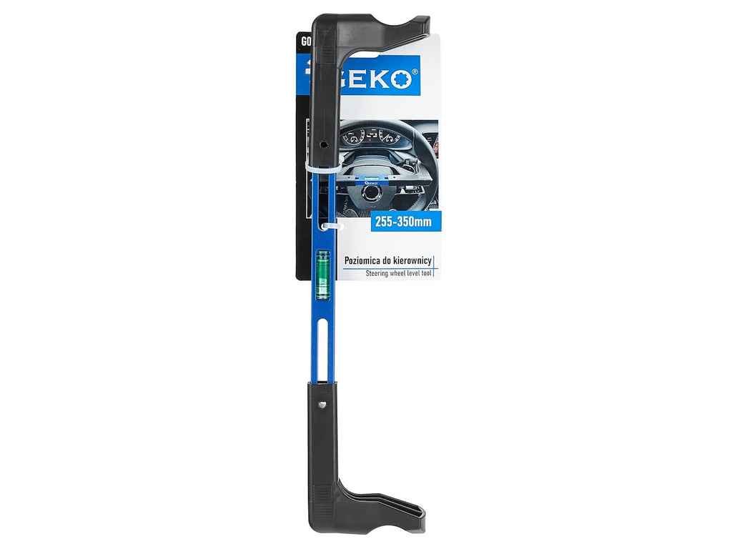Нивелирът за позициониране на волан 255-350 мм GEKO е предназначен за прецизно центриране на волана по време на работа по подравняване на волана. Той е оборудван с интегриран балончест флакон за нивелиране спрямо надлъжната ос на автомобила. Диапазонът на регулиране е 255-350 мм.