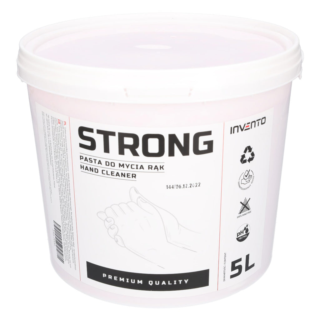 Пастата за почистване на ръце 5 л STRONG INVENTO е предназначена за миене на ръце в средно натоварени условия, като работилници, различни индустрии и селско стопанство. Продуктът е предназначен за отстраняване на замърсявания от мазнини, масла, технически течности, прах и бензин. Съдържа синтетичен абразив без пясък.