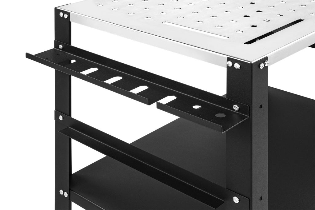 Тази работна мобилна маса за заваряване HBM 81 x 52 см е оборудвана с четири въртящи се колела със спирачна система. Работната повърхност е с поцинковано покритие и дебелина 1,5 мм. Масата е с дължина 81 см, ширина 52 см и височина 87 см. Нетното тегло на продукта е 21 кг.