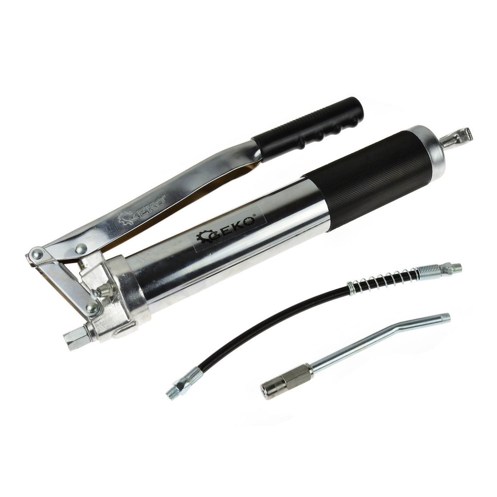 Тази ръчна помпа за гресиране 600 мл GEKO е ръчно задействана гресва помпа със страничен лост, оборудвана с Т-образна дръжка за интензивна употреба. Работи при работно налягане от 4500 psi и може да достигне максимално налягане до 12000 psi.