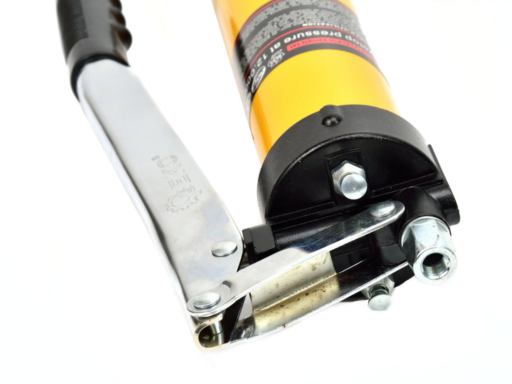 Тази ръчна помпа за гресиране 900 мл GEKO е ръчно задействана гресова помпа със страничен лост, оборудвана с Т-образна дръжка за интензивна употреба. Работи при работно налягане от 4500 psi и може да достигне максимално налягане до 12000 psi.