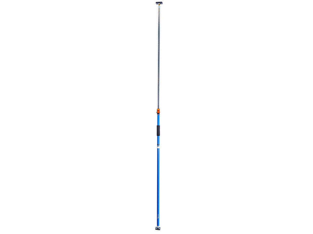 Конструкцията е изработена от стомана, а контактните повърхности са покрити с противоплъзгащо PVC за стабилност и защита на материала. Краищата на опората могат да се накланят между -45° и +45°, което улеснява работата под различни ъгли. Телескопичният механизъм е оборудван с система за бързо заключване и дръжка от пяна за безопасно ръчно затягане.