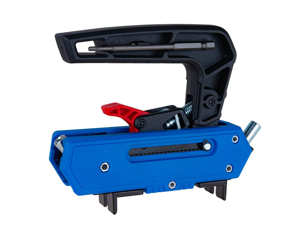Водачите са изработени от закалена стомана. Устройството е снабдено със система за бързо освобождаване на скобата и отделение за съхранение на бита.