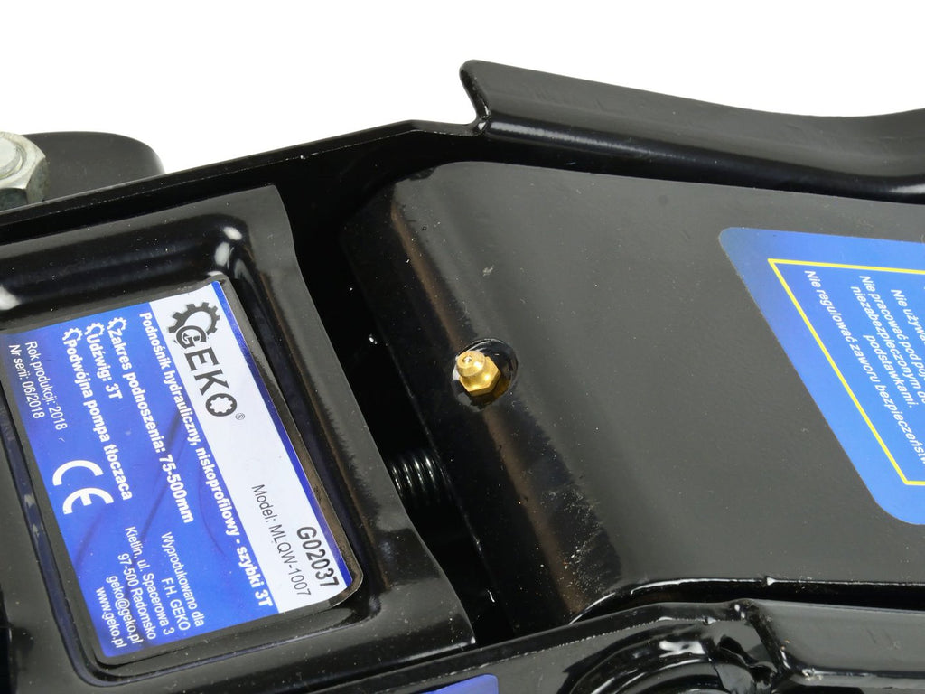 Този хидравличен крик тип крокодил, нисък 3 т 75-500 мм GEKO е стабилен хидравличен крик, предназначен за повдигане на превозни средства. Той има максимален капацитет на повдигане от 3 тона и е оборудван с двойна помпена система за бързо повдигане. Минималната работна височина е 75 мм, а максималната височина на повдигане достига 500 мм.