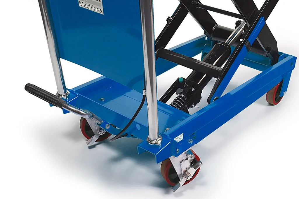Масата е оборудвана с четири колелца с диаметър 127 мм, две от които са снабдени със заключваща система за фиксиране в положение по време на работа. Общите размери на масата са 980 мм дължина, 500 мм ширина и 970 мм височина (в неутрално положение). В минимална конфигурация платформата е висока 350 мм и се издига постепенно до максимална височина от 1300 мм.