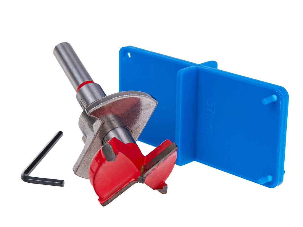 Включената фреза има диаметър 35 мм и е снабдена с регулиране на дълбочината за адаптиране към различни дебелини на материала. Тя е изработена с пластини от карбид (видия), осигуряващи висока издръжливост и прецизност при пробиване. Фрезата е оборудвана с центриращ връх за точно позициониране.