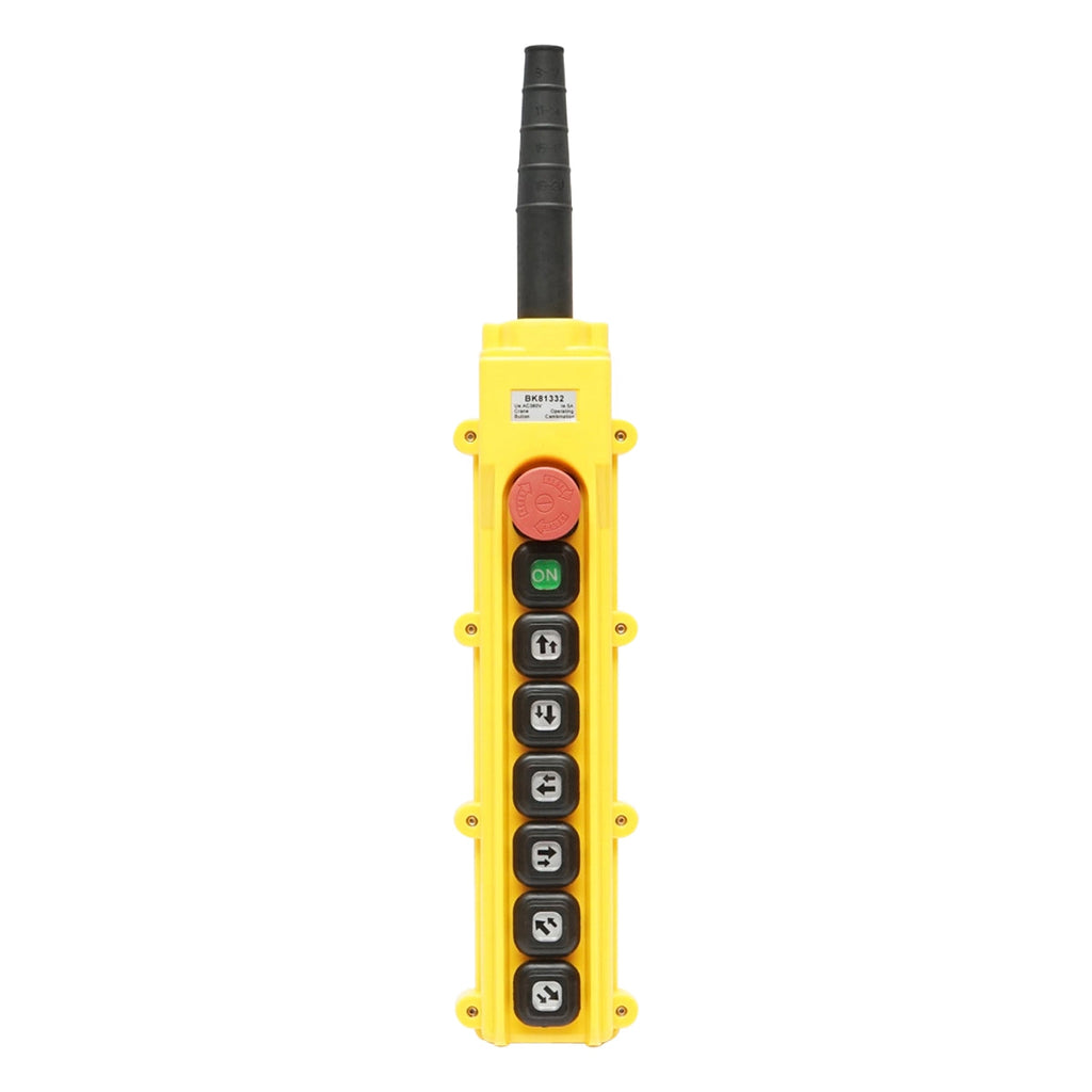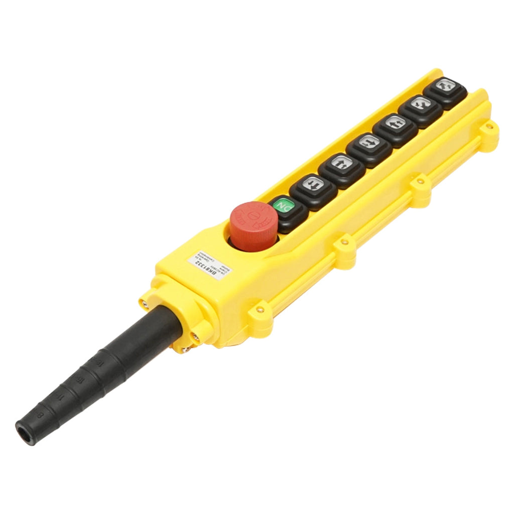 Това безжично индустриално дистанционно с 8 механизма 380V Breckner Germany има 6 бутона и размери 315 x 81 x 53 мм.