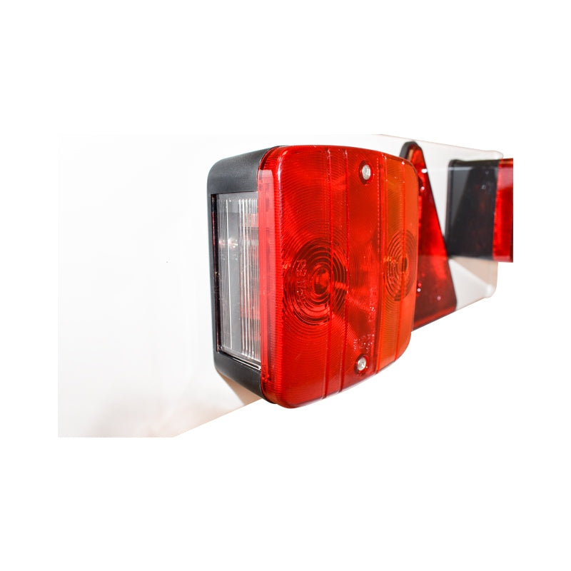 Дължината на тази греда за ремарке 1220 мм, 2x лампа, 1x лампа за мъгла, 2x светлоотразителен триъгълник, 6 м кабел и 7-пинов 12V контакт е 1220 мм, общата дължина на кабела е 6 м, оборудвана е със 7-пинов 12V конектор и включва 2 спирачни светлини и светлина за мъгла.