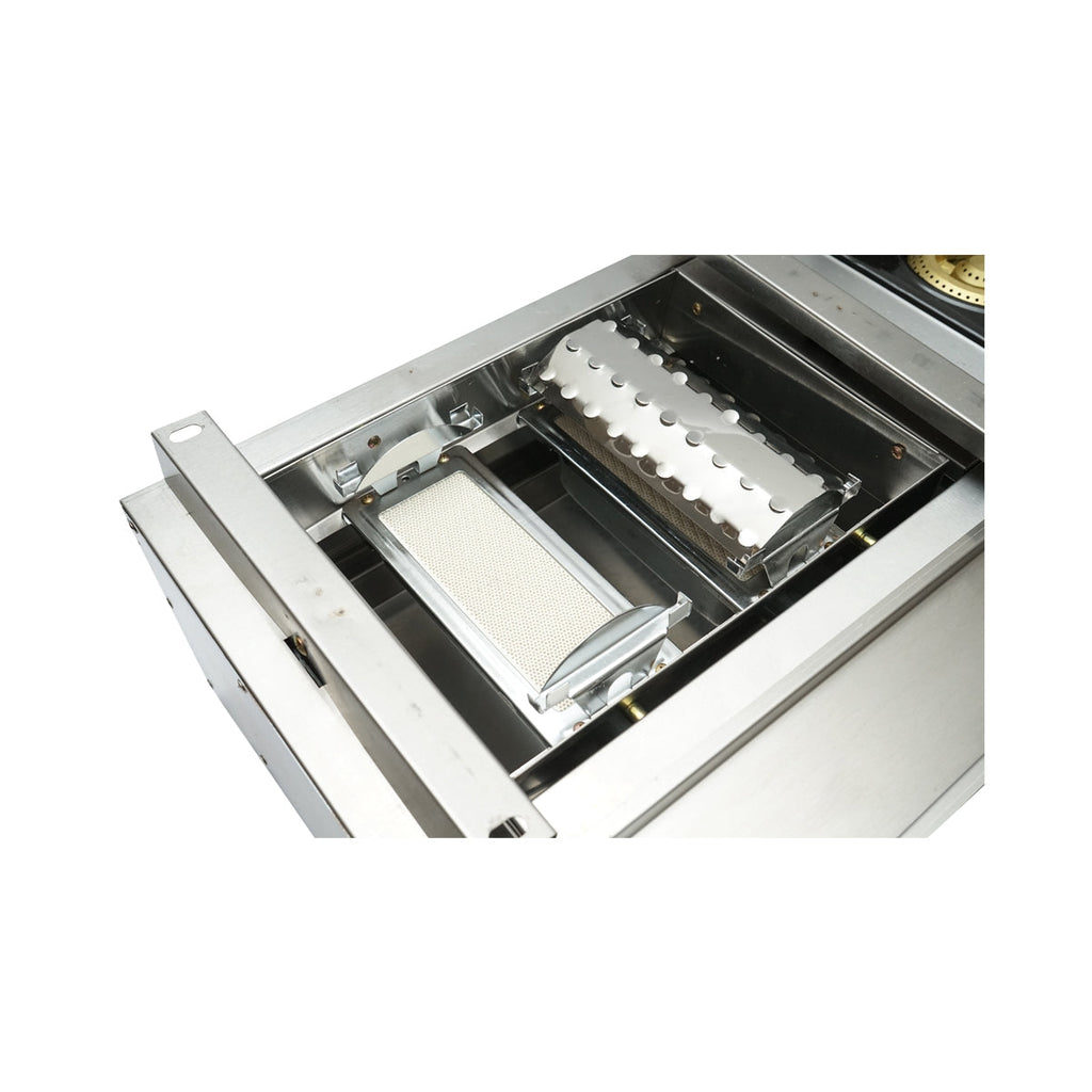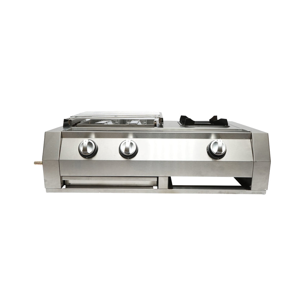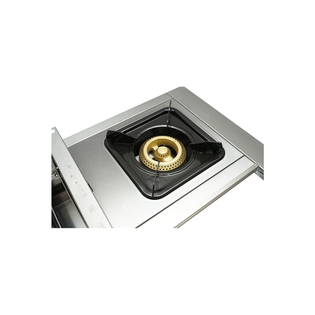 Това къмпинг барбекю със скара 2 горелки и 1 зона за готвене 676x400х185 мм е изработено от неръждаема стомана, с грил повърхност 360 x 250 мм, общи размери 676 x 400 x 185 мм и тегло 10 кг.