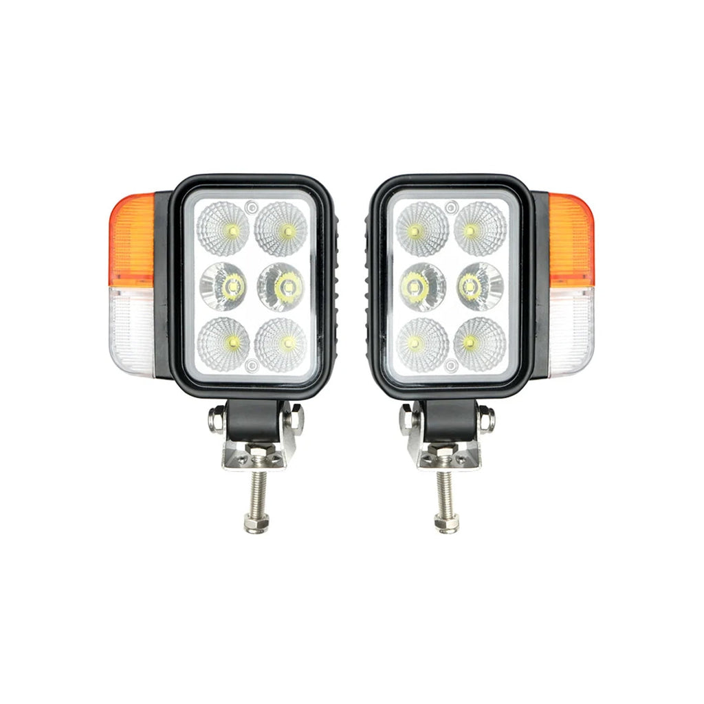 Този комплект универсални фарове за трактори, ляв и десен, с LED 10-80V, цветна температура 6000K, позиции 3W LED и сигнализация 3W LED Breckner Germany има захранващо напрежение 10 - 80V, цветна температура 6000K и размери 109 x 105 x 41 мм.