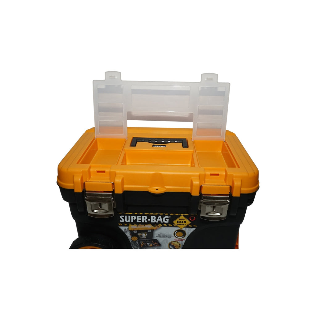 Тази кутия за инструменти с колелца 652x400х420мм е изработена от пластмаса за издръжливост и се предлага с колела за лесно пренасяне.