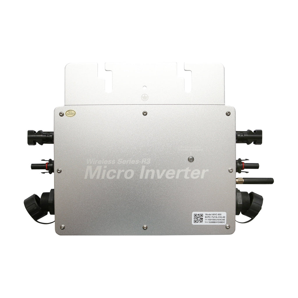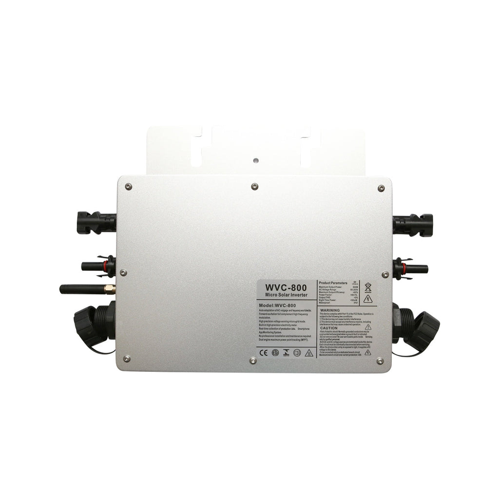 Този микроинвертор за фотоволтаични слънчеви панели 800W, 230V, WiFi, IP65, MPPT е с размери 283 x 200 x 42 мм, тежи 1,46 кг, комуникира чрез Wi-Fi и препоръчва използването на 2 x 500 W соларни панели.